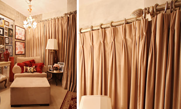 Deixar o suporte aparente também vale, principalmente quando ele acrescenta e combina com a decoração. Outro item de acabamento é a braçadeira, que além de manter a cortina aberta dá um toque clássico a ela. Com um discreto gancho preso à parede, ela pode ser de tecido ou de pingentes. A escolha depende do material da cortina e do efeito que se quer criar.