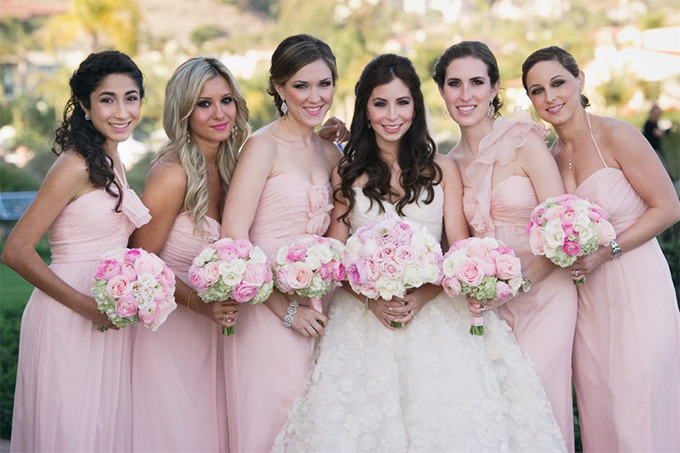 É verdade que muitas noivas ainda têm preconceito com o uso do rosa na decoração do casamento, por medo de que a festa fique com um ar jovial demais. Mas a verdade é que a cor já desponta como uma das fortes opções para compor um visual romântico e delicado no altar, especialmente se for usada para padronizar os trajes das madrinhas. E quando usada da forma correta, não passa a impressão de baile de debutante.